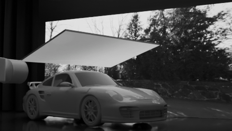 A dedicated car-shooting setup with a 2 × 3 m overhead projection system. Realistic road environments and natural reflections bring vehicles to life, all within the comfort of the studio.